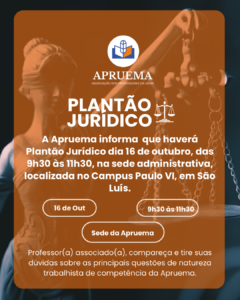 A Associação dos Professores da Universidade Estadual do Maranhão (Apruema) informa a todos os docentes sócios que, no próximo dia 16 de outubro (quinta-feira), das