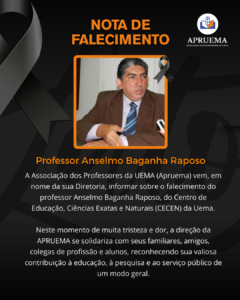 A Associação dos Professores da UEMA (APRUEMA) vem, em nome da sua Diretoria, informar sobre o falecimento do professor Anselmo Baganha Raposo, do Centro de