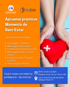 A Associação dos Professores da Universidade Estadual do Maranhão (Apruema) realizará, entre os dias 6 e 8 de outubro, o evento “Momento de Bem-Estar”, uma