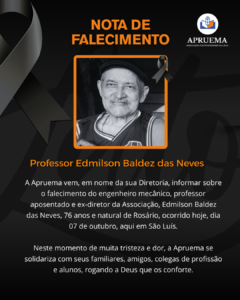 A Associação dos Professores da UEMA (APRUEMA) vem, em nome da sua Diretoria, informar sobre o falecimento do engenheiro mecânico, professor aposentado e ex-diretor da